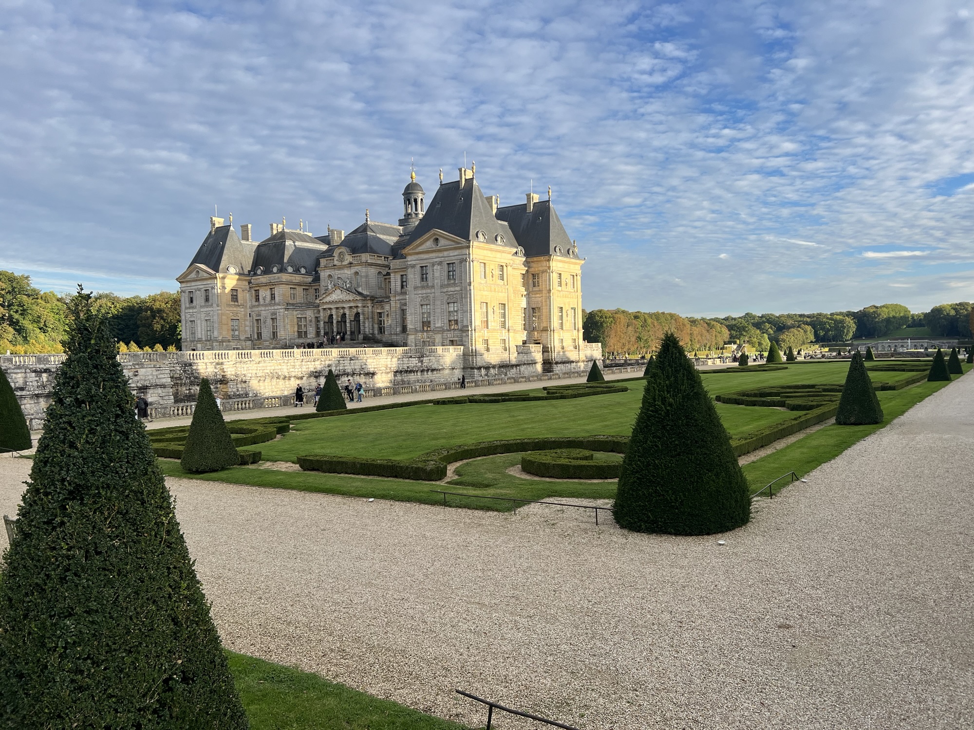 We returned to the hotel where our room was ready. We changed and headed across town to a bus that would take us to the candlelit evening at Le Château du Vaux-le-Vicomte, which is about 50 minutes SE of Paris. It was built by Nicholas Fouquet, King Louis XIV’s finance minister. He used a trio of master artisans who were later commissioned to build Versailles, which incorporated some of the concepts used at the V-l-V. The main architect Louis Le Van, the grounds designer Charles Le Brun, and the paysagiste André Le Nôtre.